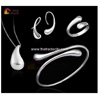 Silver Teardrop Bangle Jewelry Sets