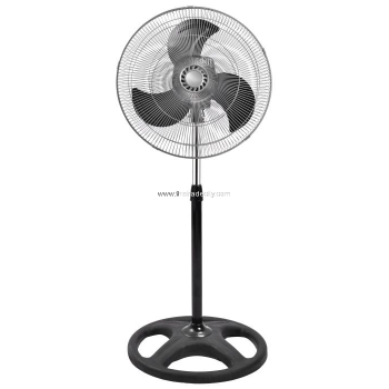 18" INDUSTRIAL FAN, 100-240V/50Hz/60Hz, 55W, ALU MOTOR, 160PCS LINE GRILL WITH BLACK POWDER SPRAY PAINTING, 3 IRON BLADES, 3 SPEED, 1.25M ADJUSTABLE HEIGHT, NEW TOOL FREE PLUG-IN TYPE ROUND BASE, OSCILLATING FUNCTION, 1.5M TOTAL LENGTH WIRE, PLUG UPON REQUEST.