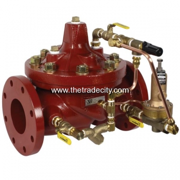 The WATTS ACV Backpressure or Sustaining Control Valve with Hydraulic Check Feature is designed to permit flow when upstream pressure is above the adjustable setpoint of the control pilot, and throttle toward closed when upstream pressure falls below the adjustable setpoint. The valve will also close drip-tight when downstream pressure becomes greater than upstream pressure.